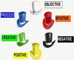 Nón vàng: Tại sao vài ý kiến sẽ chạy tốt và tại sao nó mang lại lợi ích. Ỏ đây cũng có thể dùng về các kết quả cuả các hành động được đề xuất hay các đề án. Nó còn dùng để tìm ra những vật hay hiệu quả có giá trị cuả những gì đã xãy ra.